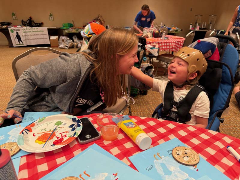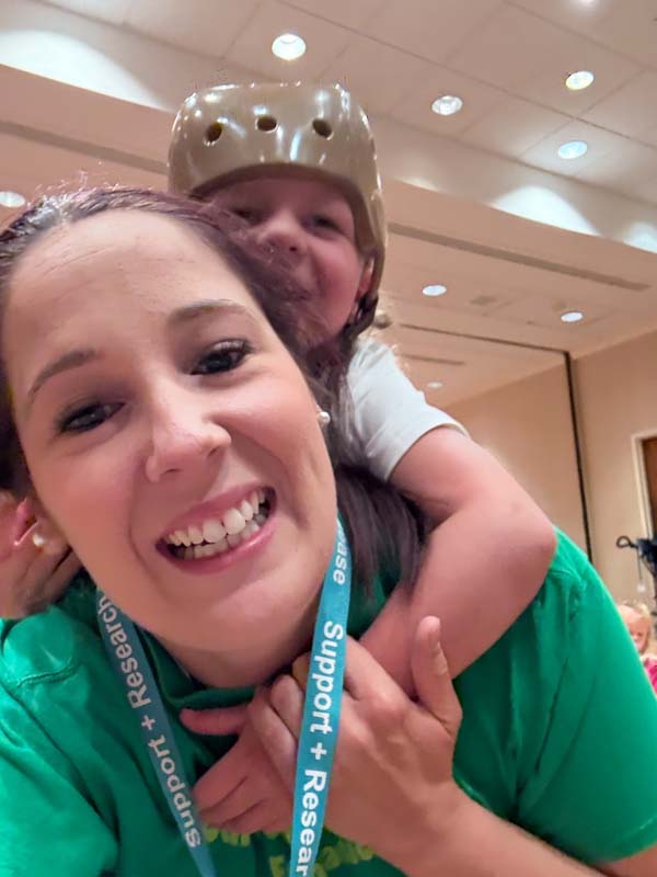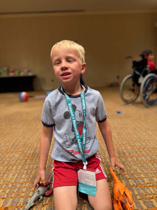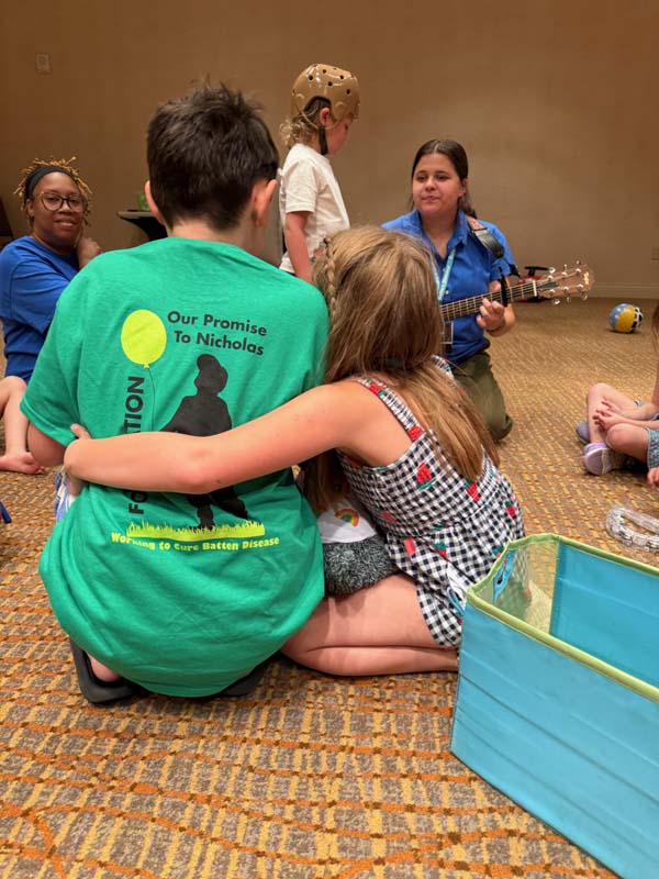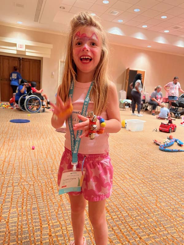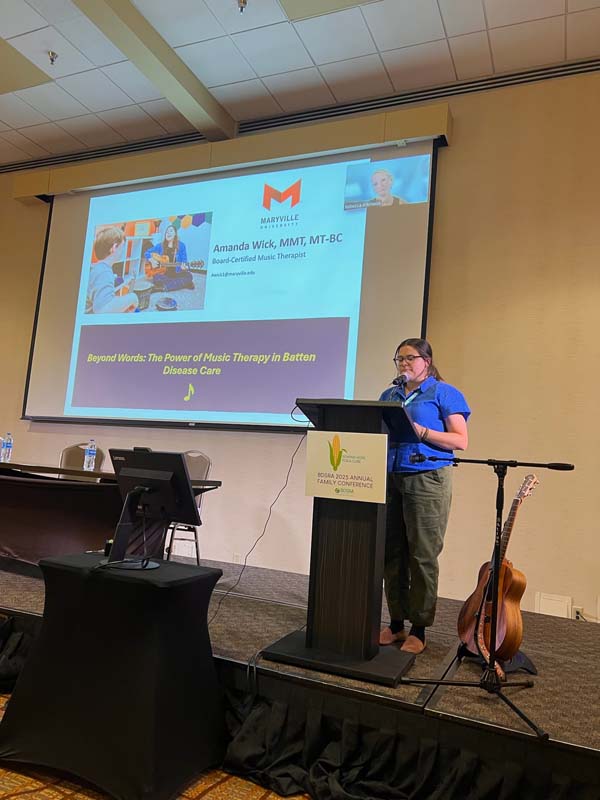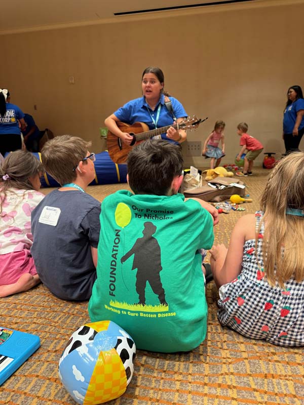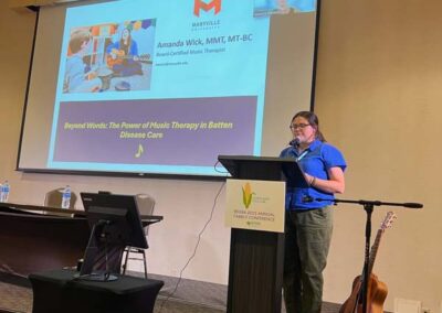 This year was a little different for me. I wasn’t in the affected childcare room as in past years—the place that has always felt like home to my heart and soul. Now that I am employed part-time with BDSRA as Director of Family Support, I spent more time in sessions and walking alongside parents and families: offering one-to-one support, hosting peer-to-peer groups, speaking during an end-of-life tissue-donation session to share our family’s story, helping introduce speakers for a session on the powerful connection between Batten disease science and music therapy, and joining several bereavement groups throughout the weekend.