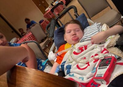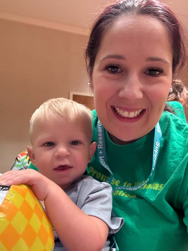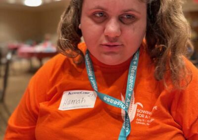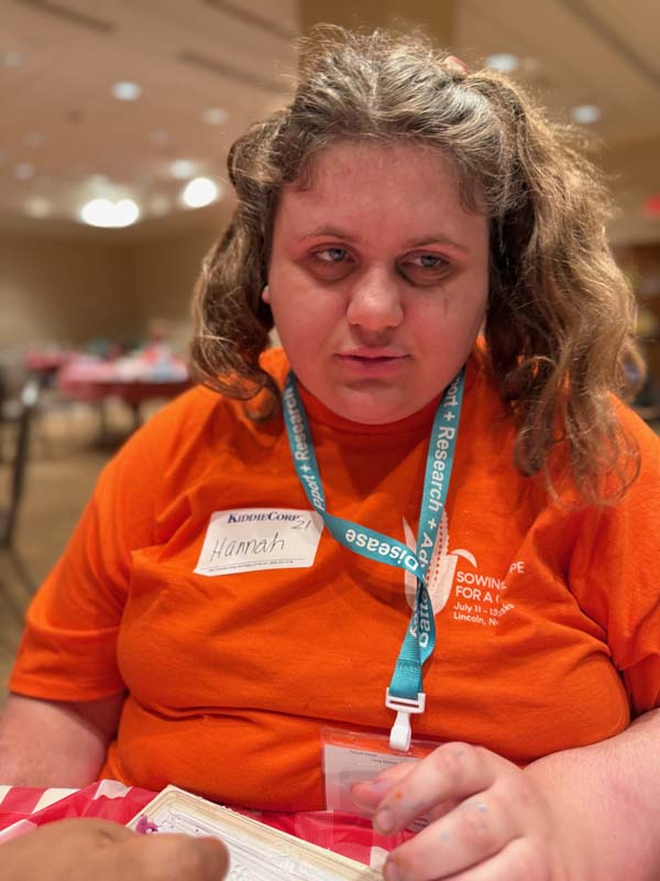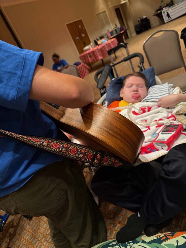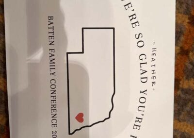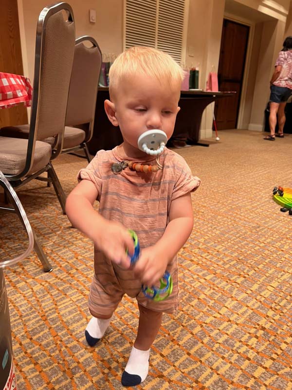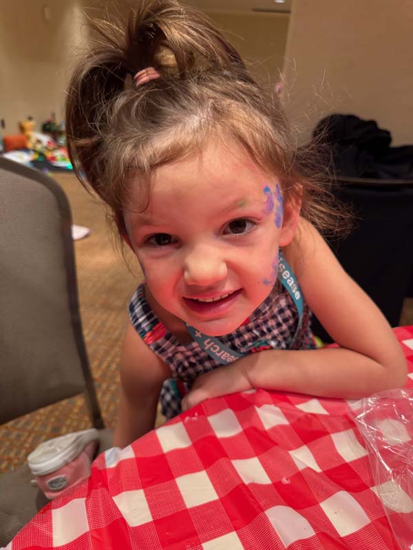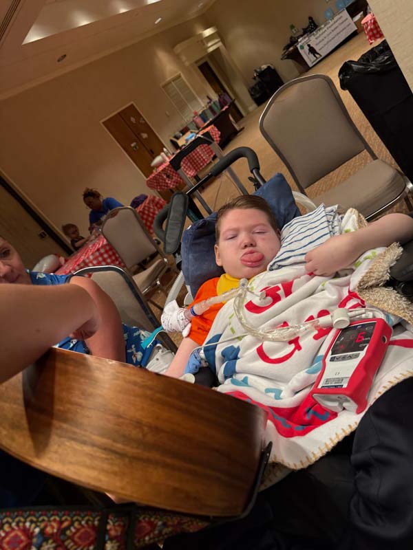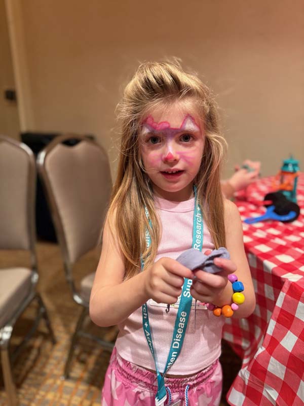 This year was a little different for me. I wasn’t in the affected childcare room as in past years—the place that has always felt like home to my heart and soul. Now that I am employed part-time with BDSRA as Director of Family Support, I spent more time in sessions and walking alongside parents and families: offering one-to-one support, hosting peer-to-peer groups, speaking during an end-of-life tissue-donation session to share our family’s story, helping introduce speakers for a session on the powerful connection between Batten disease science and music therapy, and joining several bereavement groups throughout the weekend.