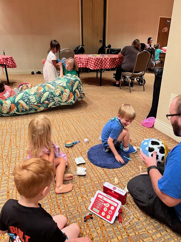They welcome each child with open arms and endless creativity, offering arts and crafts, toys, music therapy, lots of hugs, and plenty of laughter. Their warmth and professionalism allow parents to attend sessions and breathe a little easier, knowing their children are cherished and safe. Because of them, the children shine, and the conference becomes a place where families feel deeply supported.